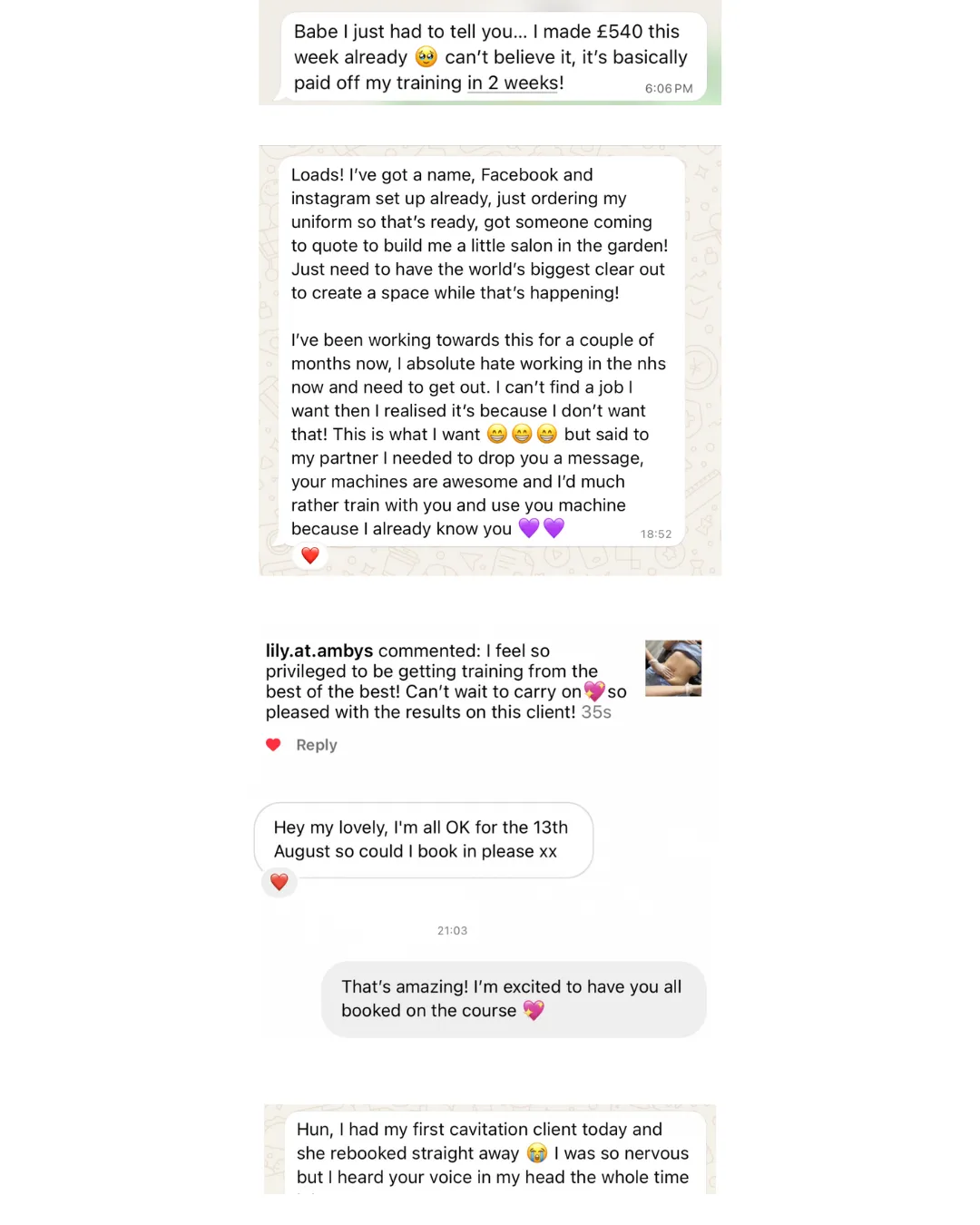 In this full day accredited training you’ll train on our device! You’ll experience the full body sculptor experience, gain my expert knowledge,learn my proven techniques and get instant access to my online business ready kit PLUS added bonuses, to help you start earning right away, start taking bookings and help you launch treatments right away and start taking deposits asap!!